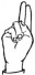 На ћирилици написано КОСТАДИН БОГИЋ састоји се из 13 слова [?]. Исписано ћириличном једноручном азбуком за глувонеме: